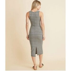 Marine Layer Lexi Rib Daytime Midi Dress in Black & White Stripe Size Sm…