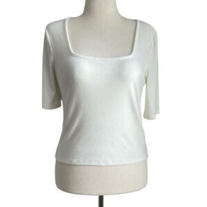 Marine Layer Lexi Rib White Ribbed Square Neck Tee Size L Tencel Blend