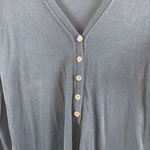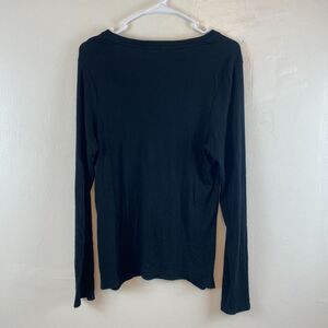 Marine Layer Lexi Ribbed 5 Button Henley V-Neck Long Sleeve Black Basic XL