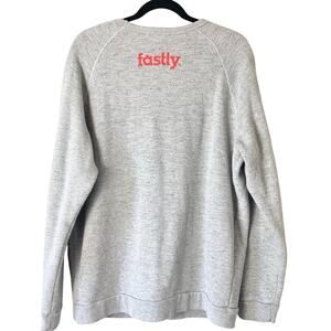 Excellent used condition! Gray long sleeved crewneck sweatshirt. Fleece lined interior with marine layer logo on left chest. Graphic “fastly” spell out on back in red. Banded sleeve cuffs. A great basic for your fall and winter wardrobe.