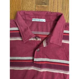 Marine Layer Men’s Polo Shirt Small RE-Spun Burgundy Striped Short Sleeve Cotton