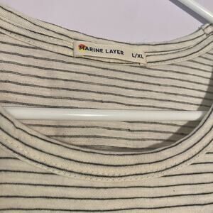 Marine Layer Men's size Large XL White Black Stripe Short Sleeve Basic T-Shirt. Marine Layer brand men's t-shirt in a size XL. White colorway with thin black horizontal stripes. Pocket at the chest. Cotton blend fabric. Measurements as pictured. In great pre-owned condition, see photos for more details. Always feel free to ask any questions you may have! Reasonable offers accepted.