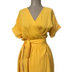 Marine Layer Midi Wrap Dress Valencia Cotton Short Sleeve Golden Yellow size XS