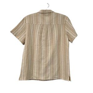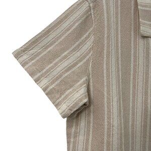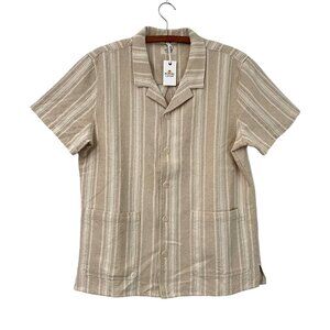 Marine Layer Natural Vertical Stripe Short Sleeve Woven Camp Shirt Mens M NEW