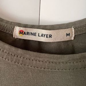 Marine Layer Olive Green Crewneck Short Sleeve Side Split Midi Length Dress Sz M