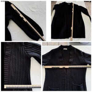 See all photos for approximate measurements & condition Stay warm and stylish with this cozy black knit cardigan. Perfect for layering, this sweater adds a touch of elegance to any outfit.