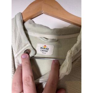 Marine Layer Quarter Button Shirt Men's Sz Medium Light Green Celery Long Sleeve