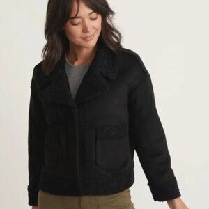 Marine Layer Quebec Sherpa Jacket Faux Suede Fuzzy Shearling Boxy Fit Coat Black NWT XL