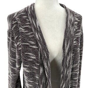 Marine Layer Retro Purple White Knit Cardigan Sweater Women's Size Small - Long sleeve open front style knit cardigan sweater - shade of dark purple with a white stitched pattern.