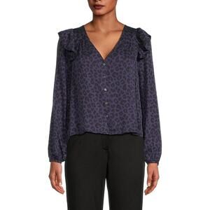 Marine Layer Rory Blouse Cheetah Animal Print Ruffle Long Sleeve Top Blue NWT S