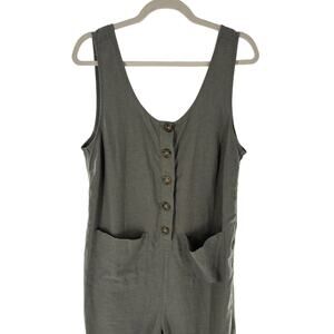 We love a good jumpsuit. Especially this one. It's got a relaxed fit for extra ease, and it's made with a linen like blend that's breathable and soft. Works as well at the beach as it does in the streets. Standard fit. Wide leg. Scoop neck. Button closure. Yarn dyed. This tencel lyocell / hemp blend is kind of like linen, but a whole lot softer. Plus, it's got a touch of spandex for comfort. Machine wash. 15129. In preowned condition.