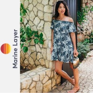 Marine Layer Shirley Off The Shoulder Dress in Navy Palm Large NEW