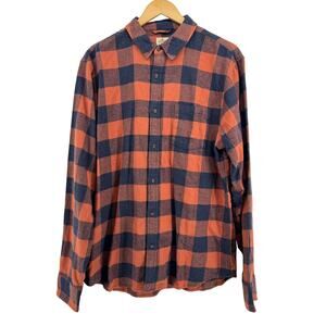 Marine Layer Shirt Mens Large Orange Plaid Buffalo Long Sleeve Button Up Casual