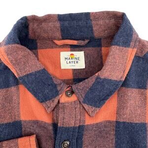 For sale is a Marine Layer Shirt Mens Large Orange Plaid Buffalo Long Sleeve Button Up Casual