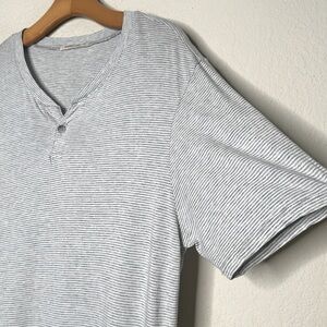 Marine Layer Short Sleeve Henley Supima Cotton Micro Modal Striped Shirt Gray M