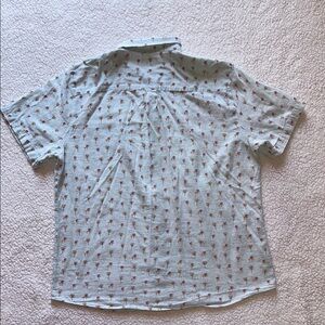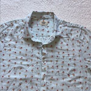 Stylish button-down with palm print. Sky blue color. Perfect for casual wear.