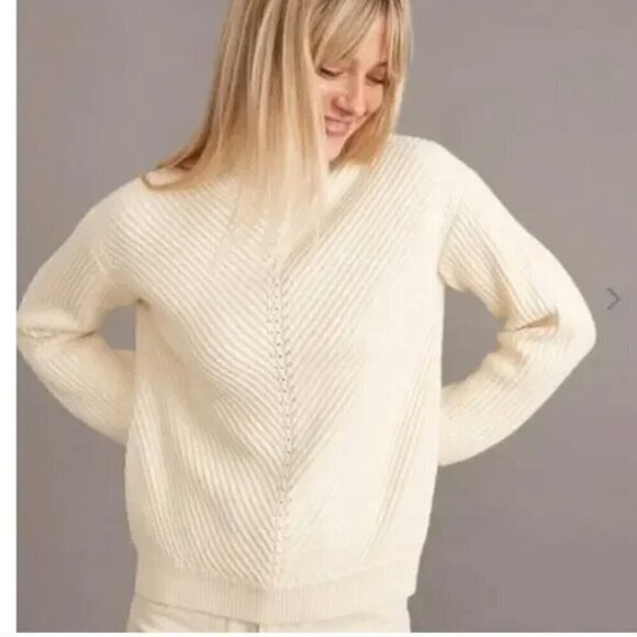 Marine Layer Skylar Sweater Knit Chevron Mock Turtleneck Pullover Ivory NWT XS