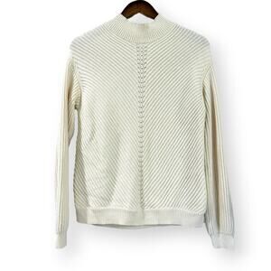 Marine Layer Skylar Turtleneck Sweater Ivory Cream Chevron Knit Wool Blend XS