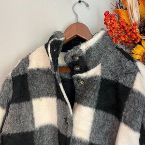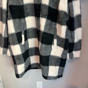 Marine Layer Stephanie Cocoon Coat Extra Large Black White Buffalo