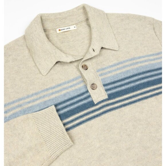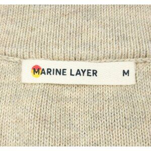 Marine Layer Striped Sweater Men's Medium Beige Blue Merino Wool Blend Collared