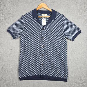Marine Layer Sweater Shirt Mens Size Small Blue Geo Asher Print Button Down NWT