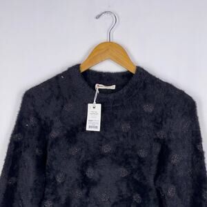 Marine Layer Sweater Womens Small Black Metallic Arielle Crewneck Funfetti