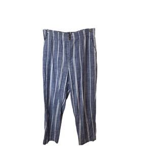 Marine Layer Sz M Elle Relaxed Crop Pant Blue White Stripe Cotton Blend GREAT!
