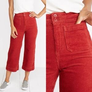 Marine Layer Tally Pant in Rosewood wide leg pocket front crop corduroy 0