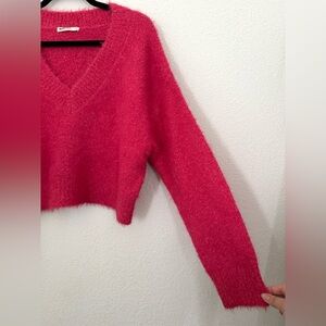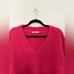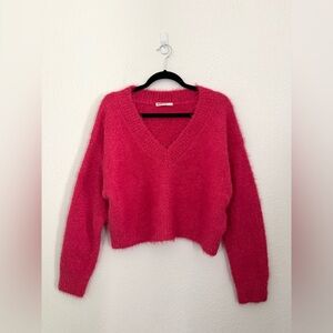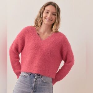Marine Layer Teddy Eyelash V-Neck Wool Blend Sweater Raspberry Pink Size Small