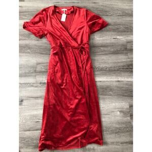 Marine Layer Viola Dress Velour Velvet Short Sleeve Wrap Midi Red Dhalia NWT XS