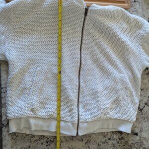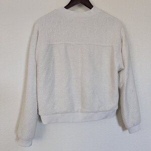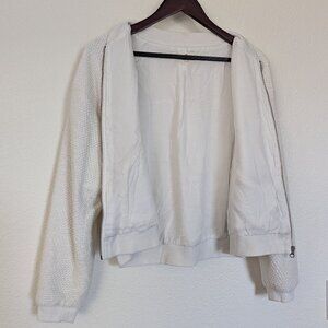 Excellent Used Condition - Marine Layer Women's Bird's Eye Bomber Jacket in Natural, which is an off-white cream color. Size XL.