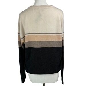Marine Layer Women's Harper Cashmere Sweater Ivory Charcoal Striped XL