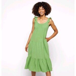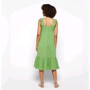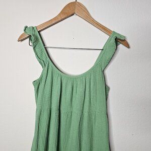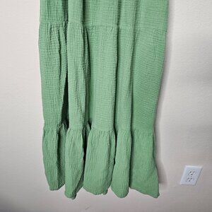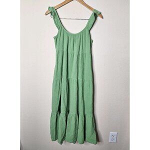 Marine Layer Womens Jude Gauze Tiered Flutter Sleeve Midi Jade Dress Size M
