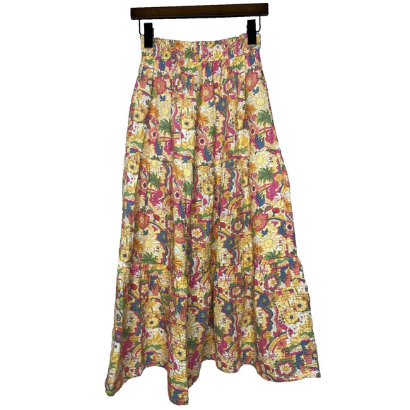 Marine Layer Women's Medium Maxi Skirt Cotton Gauze Floral Tiered Cottage Boho. Beautiful pattern