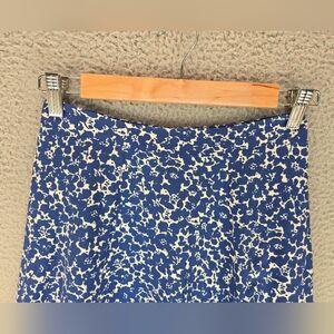 This Marine Layer women's mini skirt is perfect for any occasion, whether it's for travel, casual outings, or business meetings. The skirt is made from a soft and flowy material that feels like silk and features a beautiful floral pattern in white and blue tones. The skirt has a layered accent and a back zip closure for easy wear.