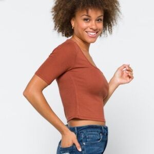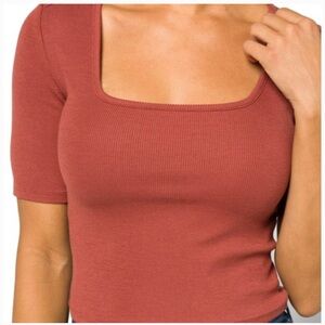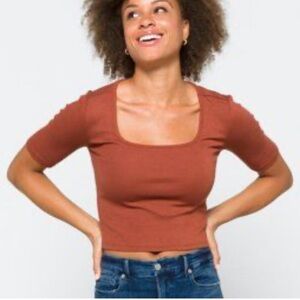 Marine Layer Women's Square Neck Rust Ribbed Top