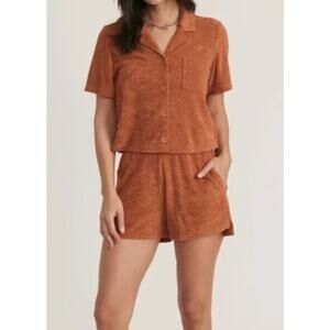 Marine Layer Women's Terry Out Resort Top Shorts Set Brown Casual Relaxed Vaca