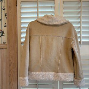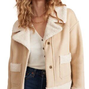 Marine Layer faux suede & faux shearling jacket in tortoise shell/cream