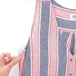 Marine Layer linen-blend striped button up dress Size XL blue/red sleeveless