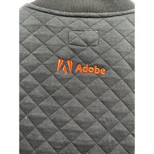 This jacket is a Marine Layer x Adobe corporate collaboration piece, featuring premium quilted texture and Adobe logo embroidery. Marine Layer is known for sustainable, ultra-soft fabrics and limited-production collabs.