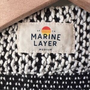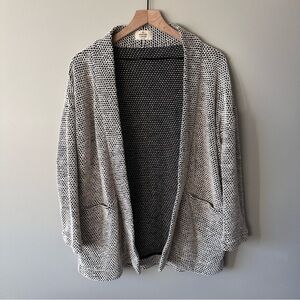 Marine Layers Women’s Open Knit Cardigan Sweater White Black Size M Hip Duster
