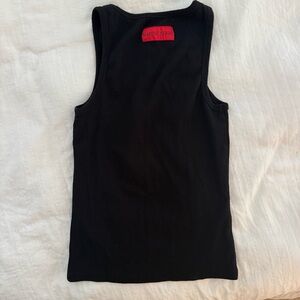 Chic black piece by Marine Serre. Crafted from organic cotton blend. Features signature label. Worn once