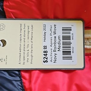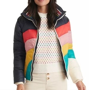 Marine layer Apres Puffer in Navy Rainbow Wave new with tag