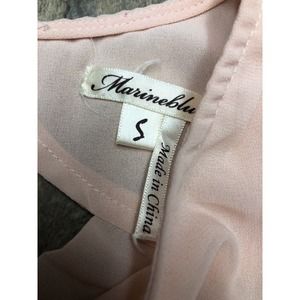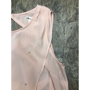 Marineblu Sz S Blush Pink Sleeveless Draped Back Blouse Pearl Front Tank Top
