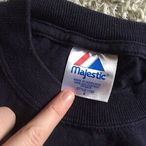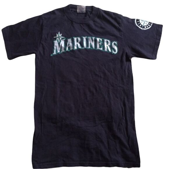 Super cool screen printed mariners tee shirt. Screen printed “patch” on the sleeve. Size small, majestic. Old shirt with lots of life left in it!
