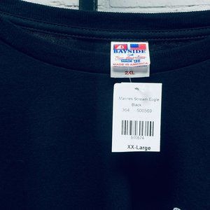 Marines USMC Black 2XL T-Shirt Scream Eagle NWT Bayside True American Made