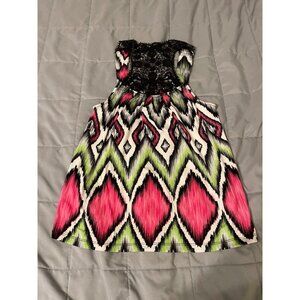 Maringue Womens Sleeveless Multicolor Zigzag Blouse With Lace Top XS
