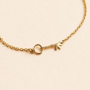 A symbolic key pendant sits on a delicate gold chain, encouraging you to unlock your full potential and achieve your wildest dreams, all the while adding a touch of empowerment to any outfit.