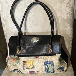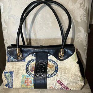 Marino Orlandi Italia, Postcard Croc Multicolored Embossed Leather Handbag. EUC.
