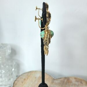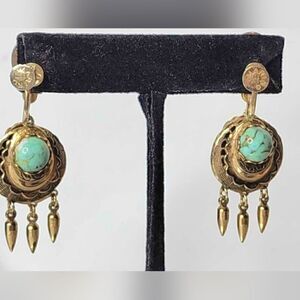 Gorgeous Marino signed Gold tone with beautiful turquoise center stones chandelier like dangle earrings